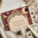 This romantic celestial wedding design captures the beauty of the night sky with rich burgundy and gold tones. Framed by ornate baroque details, glowing moons, and shining stars, it creates an atmosphere of vintage celestial elegance. Perfect for evening weddings, gothic celebrations, or couples inspired by cosmic romance.
