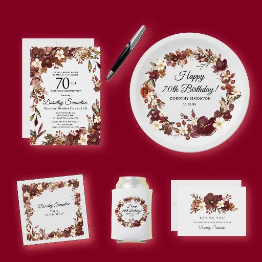 Cartão De Agradecimento Burgundy Mauve Ivory Fall 70 Birthday Flat