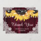 Cartão De Agradecimento Burgundy Sunflower Wood String Luzes Casamento