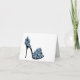 Flor azul em salto alto preto para um cartão de nota de vazio. O fundo branco pode ser alterado.