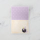 Esses cartões de agradecimento de Halloween de bruxa, roxo claro e preto, são mais doces do que assustadores! Você vai lançar um feitiço sobre seus convidados com essas notas de agradecimento super fofas com tema de Halloween, com um caldeirão transbordando de corações e um misturador de madeira com um chapéu de bruxa decorado com rosas roxas. Fundo com aparência de pergaminho e um design sutil de bolinhas. A parte superior interna deste cartão tem um fundo de coração com bolinhas roxas pastéis e brancas. O caldeirão pode ser personalizado com duas iniciais mais outra inicial, perfeito para um chá de noiva ou agradecimento de chá de casal, ou uma inicial para qualquer outra ocasião especial, como um aniversário. Arte © Chrissy H. Studios, LLC. Todos os direitos reservados.