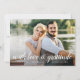 Os cartões elegantes de agradecimento apresentam a sua foto favorita de casamento no sangramento de cheio, com "com amor e gratidão" ou a sua mensagem personalizada sobreposta em um roteiro de caligrafia branca, com seus nomes e dia de casamento embaixo. Seis das suas fotos favoritas aparecem no fundo numa colagem. Personalize a parte traseira com uma mensagem pré-impressa ou exclua o texto de amostra se preferir uma nota manuscrita.