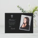 Um simples mas elegante Cartões de agradecimentos de confirmação. no lado direito, há uma foto inclinada em uma falso moldura prateada. À esquerda, sob uma cruz de prata falsa, o texto é escrito em cinzas prateadas, com as palavras Obrigado e a assinatura em um roteiro caligráfico elegante. O fundo é preto, o fundo é uma folha de prata falsa. A foto marcante de uma garota rezando é de Petr Kratochvil do Dominio público Pictures e tem modelo de lançamento.
