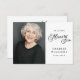 Em um cartões de agradecimentos amoroso de funeral de memória com sua foto e o texto "em memória amorosa" com "memória" em uma letra elegante de escrita de caligrafia. Abaixo estão o nome e as datas ou outro texto personalizado. Mensagem personalizada no verso.