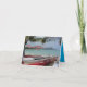 Cartão de agradecimento com uma vista para o Diamond Head com canoas e palmeiras da Praia da Lagoa de Duke Kahanamoku em Oahu, Havaí. A parte interna está em branco para impressão personalizada ou para escrever sua mensagem pessoal de agradecimento.