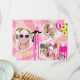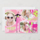 Doce e divertido tema de carnaval agradecimento cartão com 3 inserções de fotos. Em tons de rosa e verde lima.