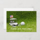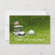 Cartão De Agradecimento Carrinho de golfe com bola de golfe e bandeira ame
