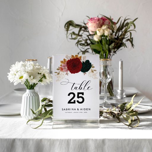 Cartão De Agradecimento Casamento Autumanal Dourado Burgundy Emarald Green