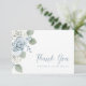 Cartões de agradecimentos de Casamento Azul. Elegante e romântico, a Suíte de Casamento Floral de Azul Dusty apresenta uma linda cor d'água azul poeirenta pintada manualmente, rosas cremes e folhas verdes de sábio. O verso inclui texto para personalização ou deixa vazio para exclusão. Encontre itens correspondentes na Suíte de Casamentos Azuis Dusty.