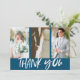 Cartão De Agradecimento Casamento Azul com Foto Moderna Três Obrigado