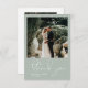 Personalize com 2 das suas fotos favoritas de casamento (uma na frente, outra na parte de trás) e faça este simples casamento, obrigado nota uma maneira perfeita de expressar sua gratidão por amigos e familiares que compartilharam seu dia especial. Escrito manuscrito minimalista lê obrigado sobre seus nomes e data. Espaço para mensagem de cheio no verso. Esta é a versão verde empoeirada.