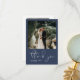 Personalize com 2 das suas fotos favoritas de casamento (uma na frente, outra na parte de trás) e faça este simples casamento, obrigado nota uma maneira perfeita de expressar sua gratidão por amigos e familiares que compartilharam seu dia especial. Escrito manuscrito minimalista lê obrigado sobre seus nomes e data. Espaço para mensagem de cheio no verso. Esta é a versão marinho azul empoeirada.