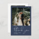 Cartão De Agradecimento Casamento Azul Simples com Foto de Script Moderno