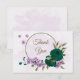 Cartão De Agradecimento casamento botânico com flores roxas esmeraldas