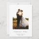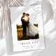 Expresse sua gratidão com o Simples Elegante Branco Obrigado Cartões. Apresentando os mesmos design, incluindo um fundo branco, uma letra de serifa clássica, uma foto personalizada do casal e nomes personalizados, esses cartões são a forma perfeita de transmitir apreciação com estilo e sofisticação.