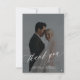 Cartão De Agradecimento Casamento branco preto com foto de script elegante