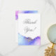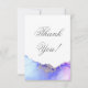 Aprecie seus hóspedes com um cartões de agradecimentos refinado impresso com azul-safira de tom joalheiro, roxo ametista e etiqueta de favor prateado. Edite facilmente a modelo para adicionar seu próprio obrigado, sua mensagem e o nome do novo Sr. e Sra... veja nossa coleção para convites e acessórios de casamento mais luxuosos. Arte abstrato original da artista internacional Pauline Benjes. Cartões de agradecimentos de Casamento Abstrato Azul Moderno.