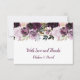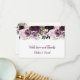 buquê de spray floral rico, de ervilhas aquáticas e rosas, em roxo escuro, lavanda, rosa e branco, com vegetação correspondente. Personalizar com suas próprias informações