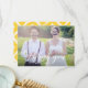 cartões de agradecimentos de fotos na moda com caligrafia branca, escrita à mão com um padrão amarelo de diamantes de ikat. Esta carta achatada será perfeita como cartões de agradecimentos de casamento ou cartões de agradecimentos de graduação. Você pode personalizar a foto, os textos e o padrão posterior. Uma versão do cartão postal também está disponível.