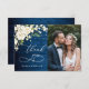 Cartão De Agradecimento Casamento com Lanterna de Madeira Azul Rosas Branc