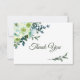 O cartões de agradecimentos de casamento inspirador cristão elegante apresenta um design de cor d'água floral com lindas flores azuis, brancas e marfim acentuadas com folhas e pedaços de ouro e verde-turquesa. O obrigado traseiro que pode ser personalizado ou eliminado para uma nota escrita à mão. Perfeito para primavera, verão, outono, casamentos no inverno.*