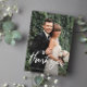 um cartão com fotos de casamento com uma imagem maravilhosa de recém-casados e texto que pode ser personalizado junto com a imagem da noiva e do noivo e a cor de trás.