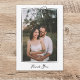 Expresse a sua sincera gratidão com o nosso cartões de agradecimentos de casamento maravilhosamente projetado. Esta carta elegante apresenta uma ilustração delicada do arco no topo. O design simples, porém sofisticado, é complementado por um estilo manuscrito "Obrigado" no fundo, acrescentando um toque pessoal. Perfeito para transmitir sua apreciação aos convidados, este cartão é impresso em papel de alta qualidade, garantindo um toque luxuoso. Personalize-o com sua foto favorita de casamento para torná-lo realmente único e memorável. Ideal para recém-casados em busca de uma maneira na moda e sincera de obrigado de seus entes queridos.