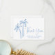 Envie sua apreciação com um cartões de agradecimentos de casamento inspirado no oceano. Apresentando palmeiras azuis desenhadas à mão e um roteiro manuscrito que diz "Obrigado", este design evoca a serenidade de um cenário costeiro. Personalize a frente com seus nomes e data de casamento, e compartilhe uma nota pessoal de agradecimento nas costas para completar a aparência.