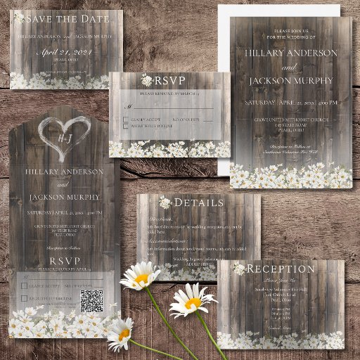 Este cartão faz parte da suíte de Convite para Casamento Barnwood e Daisies criada pela Simply Farmhouse Press para Zazzle. É um encanto rústico, mas elegante, que faz dele uma escolha perfeita para casamentos semiformais ou casuais.