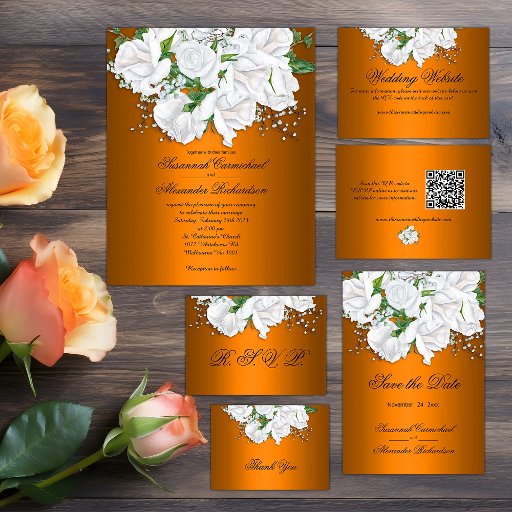 Metallic Orange and White Rose Bouquet Wedding Criado por Cheryl L