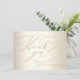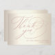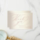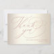 Envie um rosa de ouro personalizado e um cartões de agradecimentos brilhante de champanhe para seus convidados de casamento para os obrigado. Este design de caligrafia apresenta uma elegante tipografia de scripts com letra de mão que diz "Obrigado" juntamente com o seu nome para personalizar. A parte traseira do cartão tem uma mensagem personalizada junto com a sua assinatura. Desenhada por Susan Coffey.