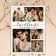 Elegante, Minimalista Mão Que Avisa A Colagem De Fotos 5, Obrigado Cartões. Cartões de agradecimentos de casamento moderno com cinco (5) fotos na frente e uma (1) foto no verso. Com o texto "Amor e obrigados" em uma letra escrita tipográfica escrita, escrita à mão, em preto, sobre fundo branco. Adicione o seu nome, as suas fotografias e o seu obrigado. Se preferir escrever manualmente a sua nota, basta eliminar o texto de amostra para obter mais espaço. Por favor, entre em contato comigo se precisar de ajuda com este design.