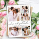 Cartões de agradecimentos moderno elegante de "amor e gratidão" com um (6) layout de colagem de seis fotos — perfeito para mostrar seus momentos favoritos do grande dia. Esta modelo minimalista inclui a frase "amor e gratidão" num roteiro caligráfico gracioso, com letra longa, impresso a preto sobre fundo branco limpo. Personalize com seus nomes, fotos de casamento e um obrigado sincero que você manda. Preferir escrever seu bilhete à mão? Basta remover o texto de exemplo para criar espaço. Um jeito bonito e na moda para qualquer casal novo dizer obrigado de você. Sinta-se à vontade para me contactar se precisar de assistência para personalizar o seu design.