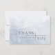 Este casamento minimalista moderno de 5" x 3,5" agradece as cartas de agradecimento que apresentam a saudação, "obrigado você", na frente, em letras azuis-cinzas escuras sobre um fundo poeirento de cor azul-d'água, com um espaço reservado para o novo nome do casal de casamento.