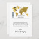 Este design apresenta um tema de passagem de embarque. Ele mostra um mapa dourado do mundo junto com dois aviões fazer forma cardíaca à medida que viagem pelo mundo. Este destino tematizado design de casamento é definido como um cartão de embarque com a data do casamento personalizado nos quadrados. O verso mostra o cartão de embarque com data de casamento personalizada. Um design de destino romântico com um toque elegante. Ideal para um casamento de destino, não importa onde no mundo. O perfeito design de cartões de agradecimentos de casamento de viagem da temporada inteira. Os convites de casamento e outros artigos de papelaria também estão disponíveis.