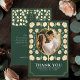 Expresse sua gratidão com charme medieval! Estes cartões de agradecimento de casamento apresentam a sua dentro de foto, uma armação em forma de escudo, rodeada por flores de creme intrincadas contra um fundo verde. Uma maneira única e elegante de dizer "obrigado" aos seus entes queridos! Personalize o texto, a fonte e as cores para se adequarem às suas preferências de design. Correspondência de Itens em nosso compro para um tema completo de festa. NOTA: O ouro apresentado nesta rubrica NÃO é folha de alumínio real.
