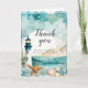 Belo cartões de agradecimentos de casamento com um farol preto e branco náutico, estrelas-do-mar e conchas. Perfeito para um casamento. As palavras podem ser alteradas para se adequarem aos seus próprios detalhes ou requisitos