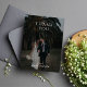 Um clássico design de casamento personalizado com a foto de casamento do casal e os nomes.