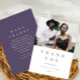 Este elegante cartões de agradecimentos de casamento fotográfico apresenta uma carta clássica e um obrigado pessoal que você envia na parte de trás da carta roxa. Todas as cores de texto e fundo são editáveis para as cores personalizadas!