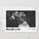 Cartões de agradecimentos de Casamento de Foto Preta da Tipografia Negros | Este obrigado fotográfico personalizável que a sua placa plana apresenta retrato preto da tipografia em negrito. É perfeito para uma variedade de eventos, como casamentos e graduações. Personalize adicionando suas fotos horizontais favoritas. Está também disponível como cartão postal e cartão dobrado.