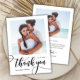 Cartão De Agradecimento Casamento de Fotografias com Grande Escrita Branca