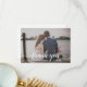 Cartões de agradecimentos de casamento com fotos modernas com "obrigado você" em um roteiro elegante de tipografia com pinceladas junto com seus nomes e data de casamento em branco sobre sua foto horizontal favorita. O verso tem sua mensagem personalizada em preto e branco simples.