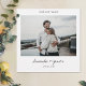 Este obrigado de casamento de fotos simples e na moda, seu modelo de carta lisa apresenta seus nomes em preto em um roteiro de escrita manual animado sob sua foto. O texto de data abaixo é um tom de cinza. A forma padrão é um estilo de canto agudo padrão, mas este design também parece excelente com cantos arredondados, então tente ambos os modos de edição para ver qual é o seu nível! Você pode optar por alterar a fonte, a pontuação ou a cor usada para vários elementos de texto deste design na frente e/ou no verso. Por exemplo, você pode optar por dar uma certa cor ao texto do seu nome ou alterar o texto LOVE AND OBRIGADOS acima da foto para OBRIGADO ou algo mais. Escolhemos preto para o texto AMOR E OBRIGADOS, mas você pode mudar isso para qualquer cor que quiser. O plano de fundo na frente é definido como transparente para permitir que a cor do papel sirva simplesmente como o tom base, mas você pode mudar esta aparência escolhendo uma cor para o plano de fundo. Na parte de trás, escolhemos uma matiz de fundo que não é bem branca, é uma cinza muito clara chamada Fumaça Branca. Você pode alterar isso selecionando outra cor nas ferramentas de edição. E escolhemos a mesma sombra de cinzas que escolhemos para a data na frente como a cor padrão para o texto no verso. Nós colocamos alguns exemplos de texto nas costas para você substituir por sua própria mensagem enquanto você vê ajustado, mas por favor não se sinta restrito por isso. Se você preferir excluir nosso texto de amostra completamente e manter a parte de trás totalmente vazio para que você possa escrever uma nota manuscrita em cada cartão, você pode fazer isso. Ou talvez você queira substituir nosso texto por sua própria mensagem de gratidão e seu próprio fechamento e então assinar seus nomes quando você receber os cartões. Você também pode mudar a fonte e pode mudar o caso da aparência de todas as maiúsculas que adicionamos. O tipo de papel padrão, matte, tem um calor suave e resiste a manobras, então é uma escolha excelente para escrevendo sua própria mensagem. Em vez disso, você pode editar isso e escolher semirdano ou outro tipo de papel. Em qualquer caso, não se esqueça de excluir nosso texto de amostra/espaço reservado em ambos os lados da placa e lembre-se de substituir a foto do espaço reservado na frente por sua. Use as ferramentas intuitivas de design, sua foto favorita e sua inspiração e faça com que esse cartões de agradecimentos de casamento chic seja exclusivamente seu. E navegue na nossa obrigado de casamento que você coleciona para designs de cartões de agradecimentos de casamento mais elegantes e modernos!