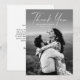 Cartões de agradecimentos de Casamento de Foto de Script Moderno. A parte traseira inclui um obrigado que você informa que você pode personalizá-lo ou removê-lo completamente se preferir entregar seu obrigado à direita.