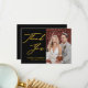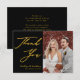 Imagem Elegante Negra e Dourada Foto Moderna Simples Cartões de agradecimentos De Casamento. Expresse o seu agradecimento aos seus amigos e família que fizeram do seu casamento um especial extra com este belo cartões de agradecimentos de fotos de casamento. Todos os textos estão pré-organizados para que você personalize fácil e rapidamente com suas próprias palavras.