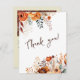 Mande estas flores românticas e elegantes para o outono Obrigado a obrigado de seu convidado por fazer parte do seu dia especial. A frente do cartão apresenta o texto "Obrigado!", enquadrado por uma ilustração botânica típica em tons de queda quente. As costas são personalizáveis com uma das suas fotografias de casamento favoritas, a sua mensagem pessoal para a sua família e amigos, e os seus nomes. Estas cartas fazem parte da coleção "Casamento Frológico Automático Elegante", com itens coordenadores para criar uma suíte de casamento única.