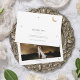 A design apresenta uma folha de ouro simples e elegante e estrelas que brilham suavemente contra um fundo limpo. O convite usa a tipografia serif clássica, que adiciona um toque tradicional e formal com seu estilo limpo e limpo. Foto no fundo pode ser personalizada com sua foto favorita de casamento.