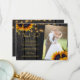 Modelo elegante de verão chic ou cartões de agradecimentos de na moda de casamento outono em madeira marrom-escura apresentando belos buquês de girassol, cordas ou luzes cintilantes, e um roteiro de caligrafia em ouro. +++++++++++++++ Fácil de personalizar com seus detalhes e foto! ++++++++++ Adequado para elegantes períodos de Verão ou outono no rusticidade do país ao ar livre ou casamentos de celeiro.
