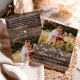 Expresse suas obrigados com este cartões de agradecimentos de casamento de pedras rústicas. O design apresenta luzes de cordas de jarro de pedras em um fundo de madeira de celeiro rústico. Personalize com duas fotos, seus nomes e mensagem pessoal.