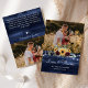 Expresse suas obrigados com este cartões de agradecimentos de casamento de marinho de girassol azul. A design apresenta belas flores amarelas da aquarela e rosas vermelhas burlosas com luzes de cordas sobre um fundo de madeira rusticado. Personalize com duas fotos, seus nomes e mensagem pessoal.